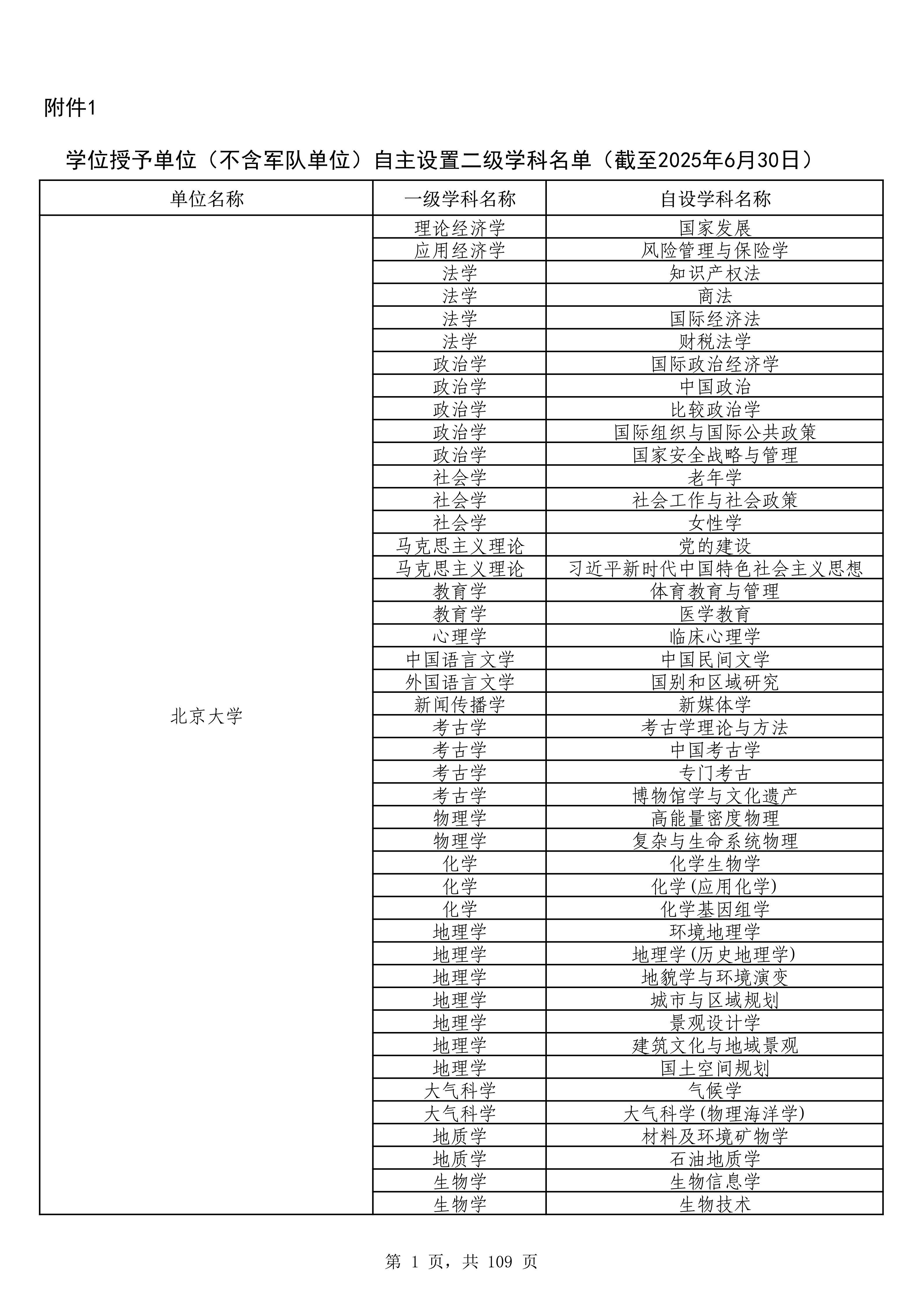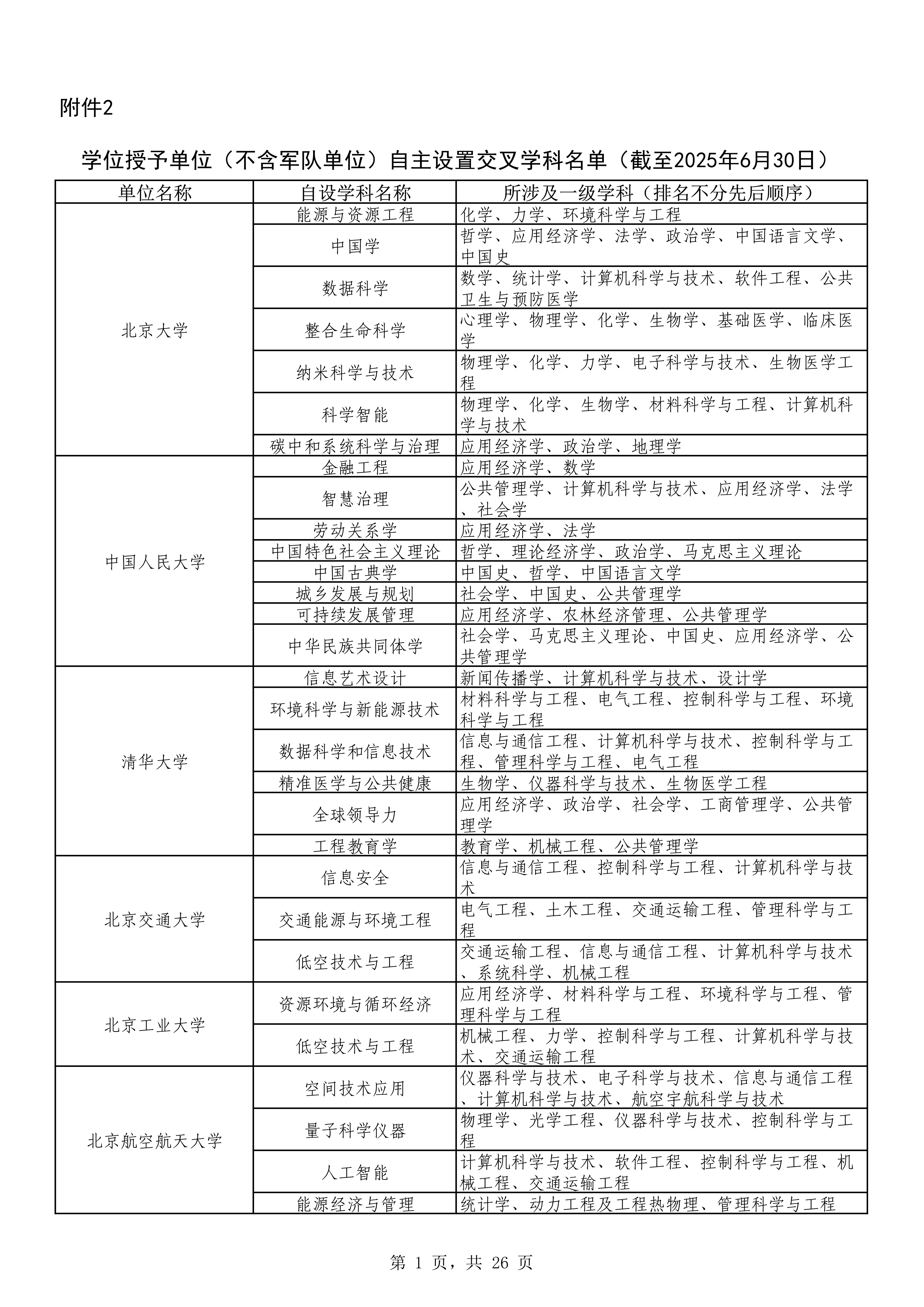 教育部公布2025年上半年學(xué)位授予單位自設(shè)學(xué)科備案名單含二級學(xué)科與交叉學(xué)科兩類